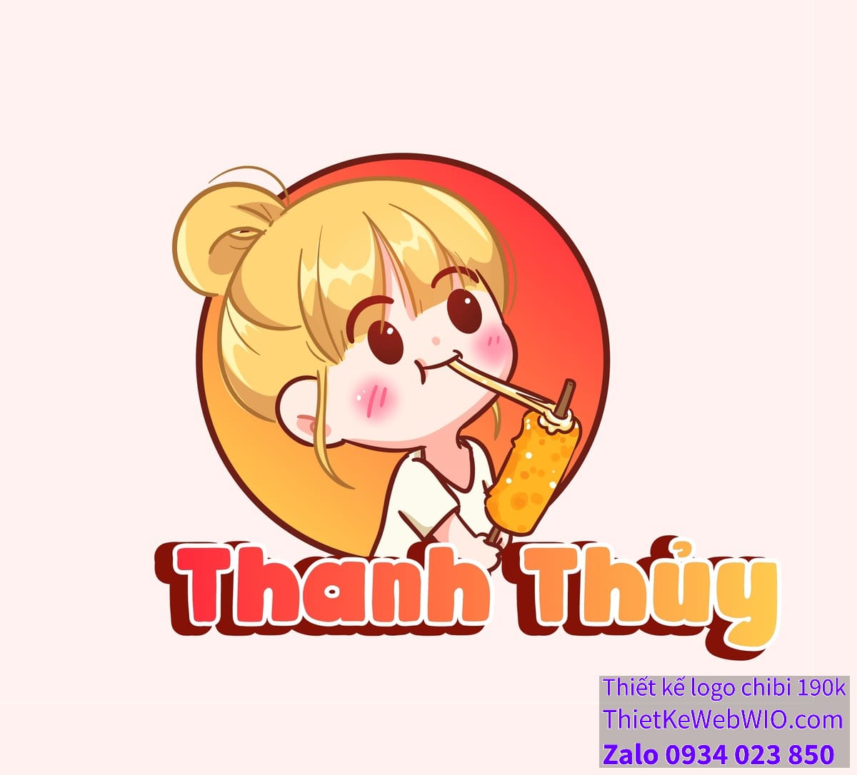 Vẽ chibi cô gái búi tóc vàng ăn vặt để thiết kế logo