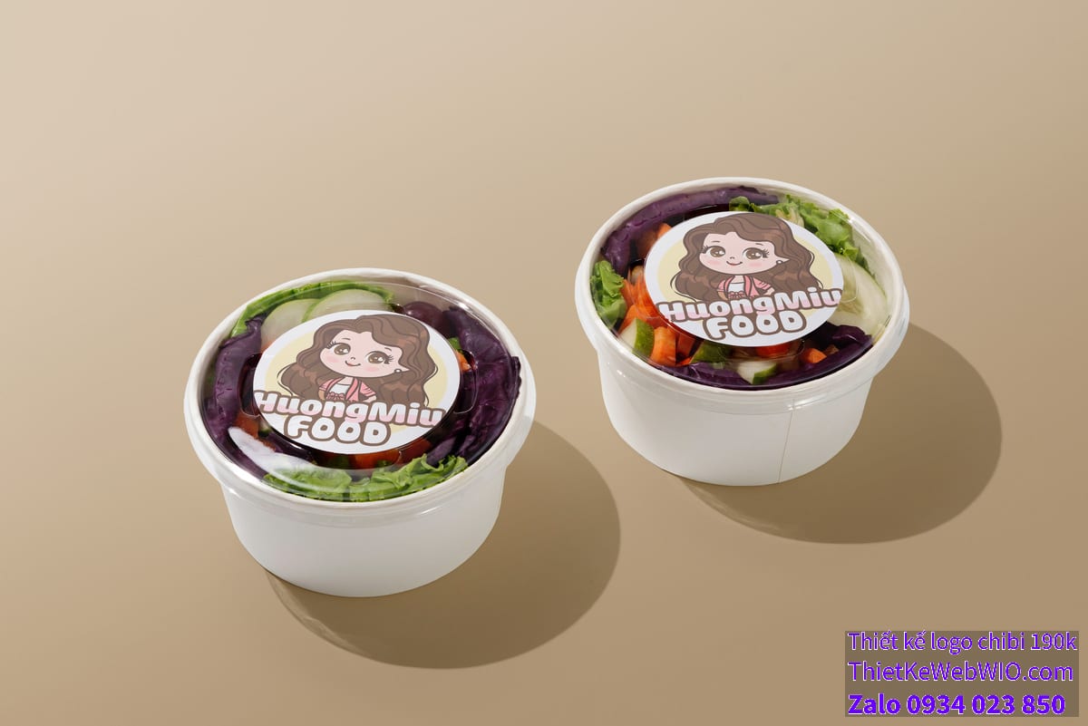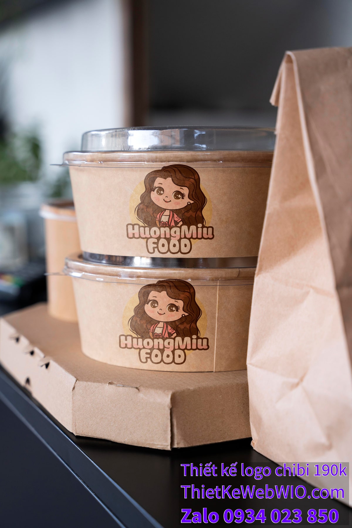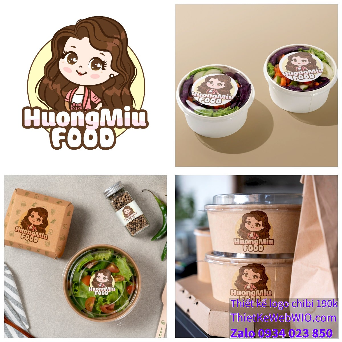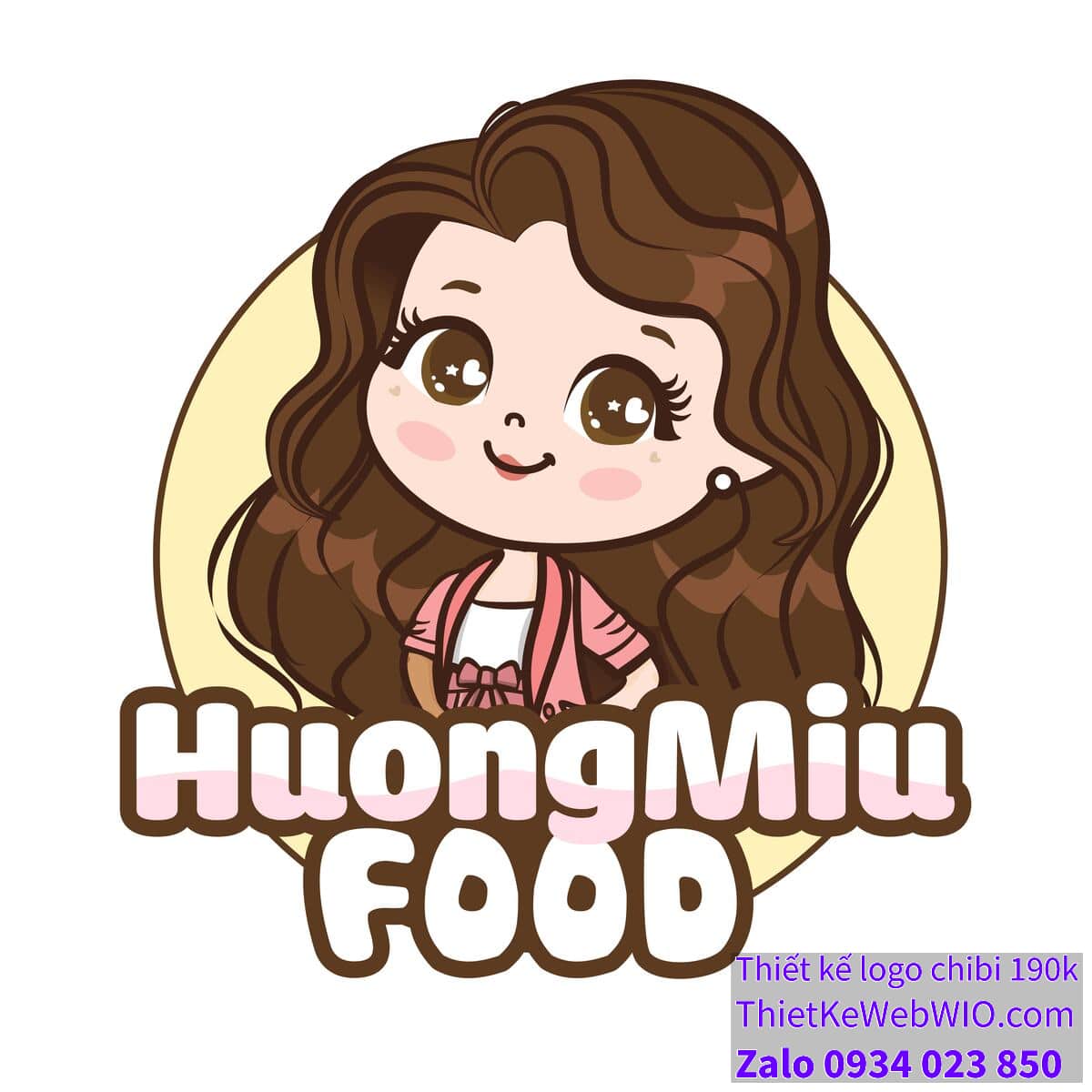 - Tên thương hiệu: Phía dưới hình ảnh chibi cô gái có mái tóc dài dễ thương là dòng chữ “HuongMiu FOOD” được thiết kế theo kiểu chữ đáng yêu, dễ đọc và hài hòa với tổng thể bức ảnh.