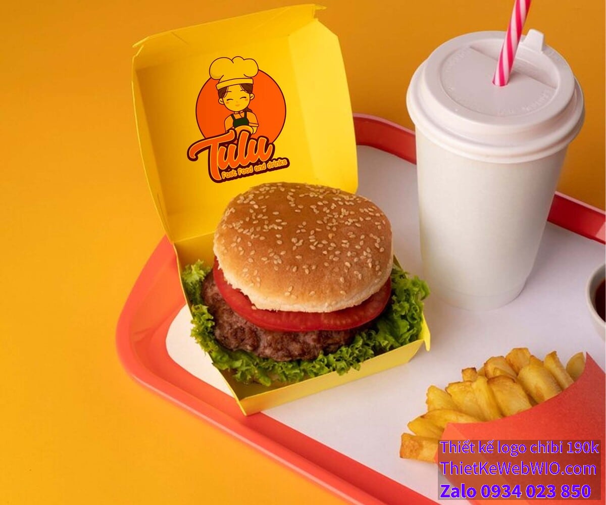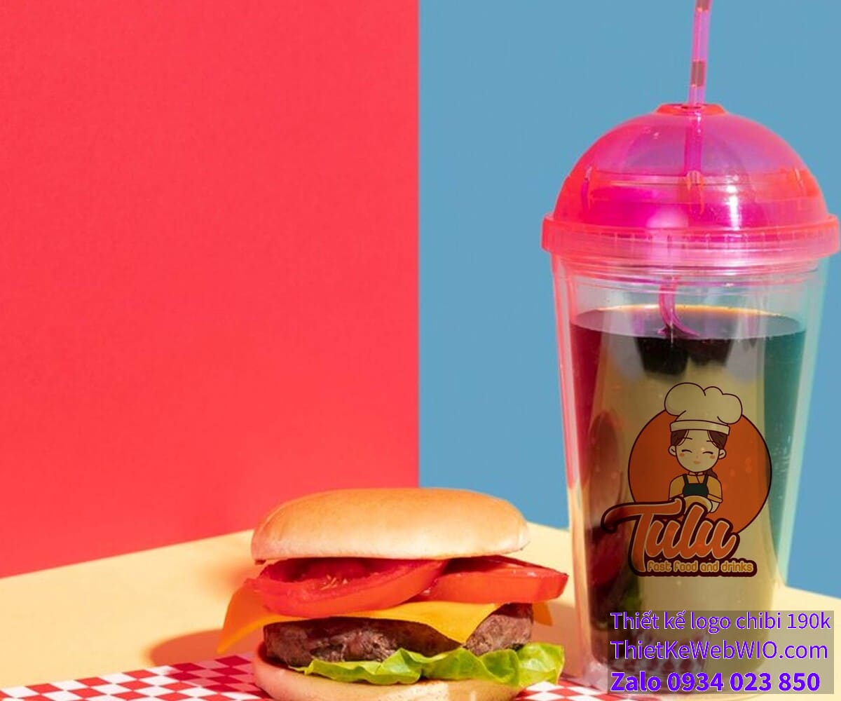 - Dòng slogan “Fast food and drinks” nằm phía dưới tên, cho thấy rõ lĩnh vực kinh doanh của thương hiệu.