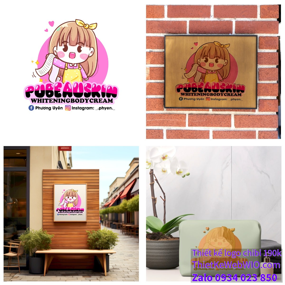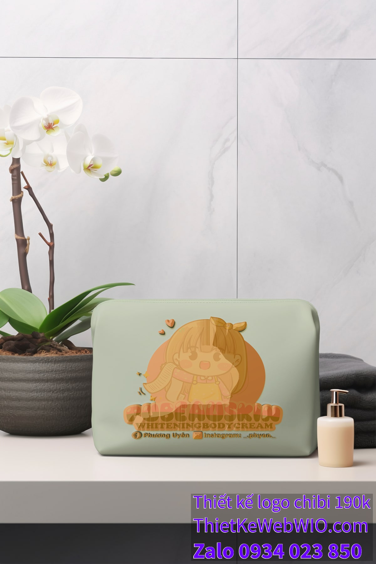 Hình ảnh này không chỉ là một tác phẩm nghệ thuật chibi dễ thương mà còn là một phần của thiết kế logo cho sản phẩm “Pure AuSkin Whitening Body Cream”. Sự kết hợp giữa hình ảnh đáng yêu và thông tin sản phẩm tạo nên một tổng thể hài hòa, dễ dàng thu hút sự chú ý của người xem và khách hàng tiềm năng.