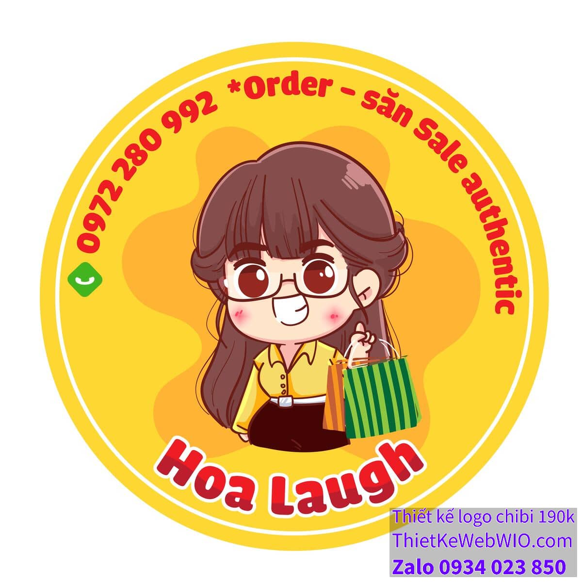- Trên viền tròn, có ghi số điện thoại “0972 280 992” cùng với dòng chữ “*Order – săn Sale authentic” thể hiện đây có thể là logo hoặc biểu tượng của một cửa hàng chuyên bán hàng giảm giá hoặc đặt hàng trực tuyến.