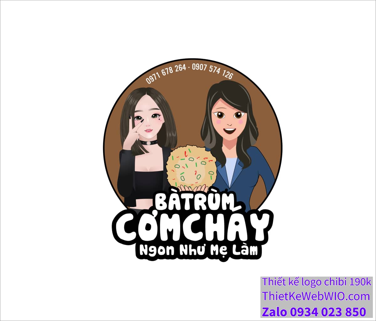 Logo này không chỉ thể hiện sự đa dạng trong phong cách và sự nghiệp của hai nhân vật mà còn tạo nên một cảm giác thân thiện, dễ gần và chuyên nghiệp cho thương hiệu “Bà Trùm Cơm Cháy – Ngon Như Mẹ Làm”.