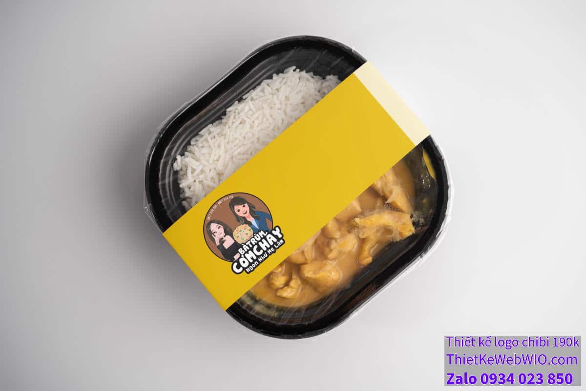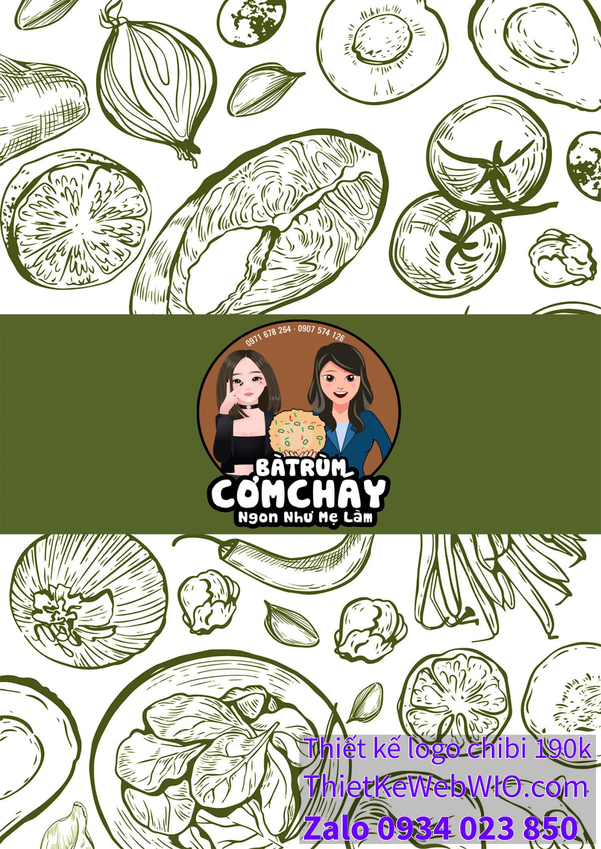 Vẽ chibi cô gái duyên dáng và cô gái công sở ăn cơm cháy để thiết kế logo