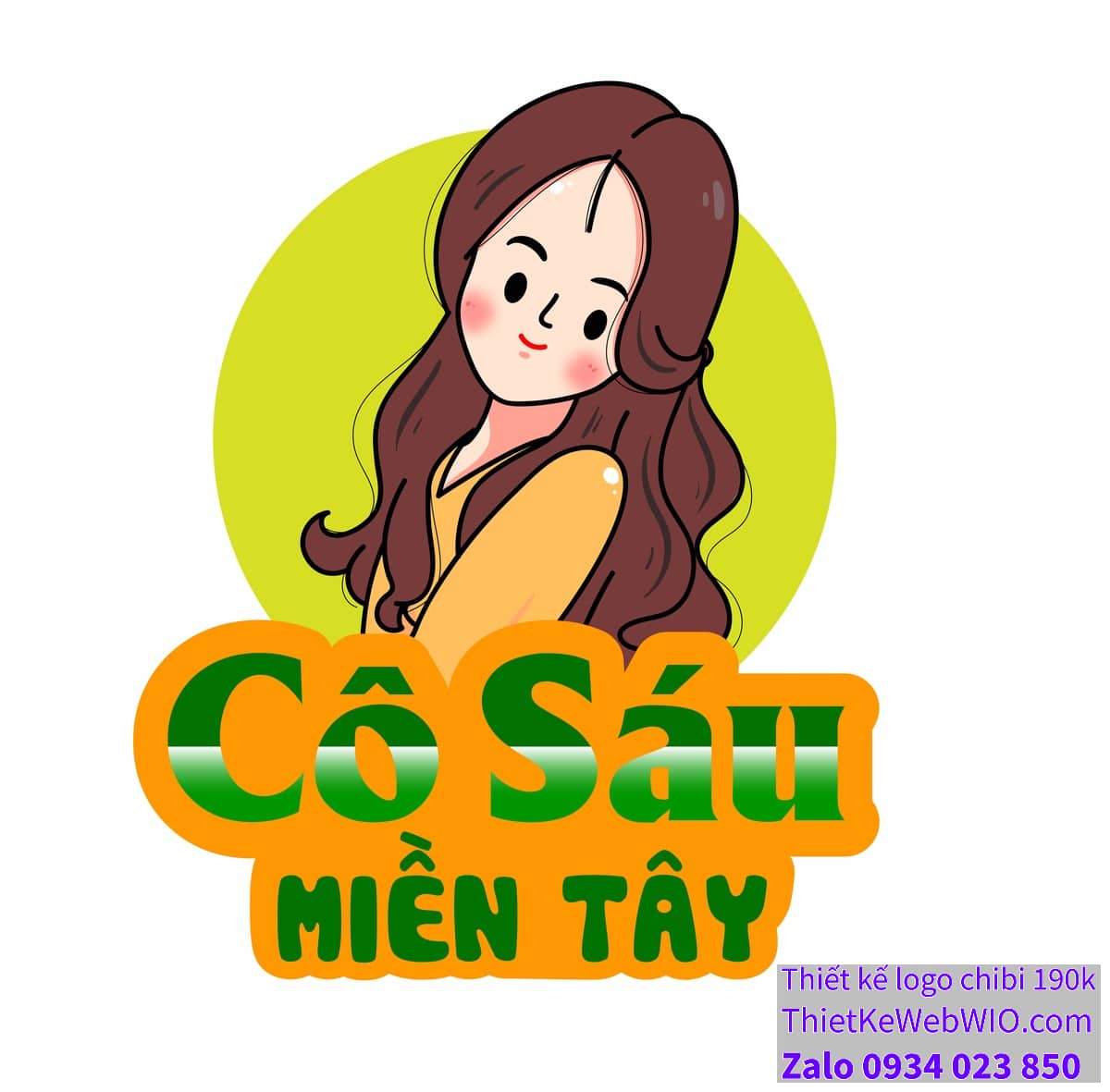- Phía dưới là dòng chữ “Cô Sáu Miền Tây” với font chữ mềm mại, màu xanh lá và viền cam nổi bật, hài hòa với màu sắc tổng thể của bức ảnh chibi cô gái miền Tây có mái tóc dài và đôi má hồng .