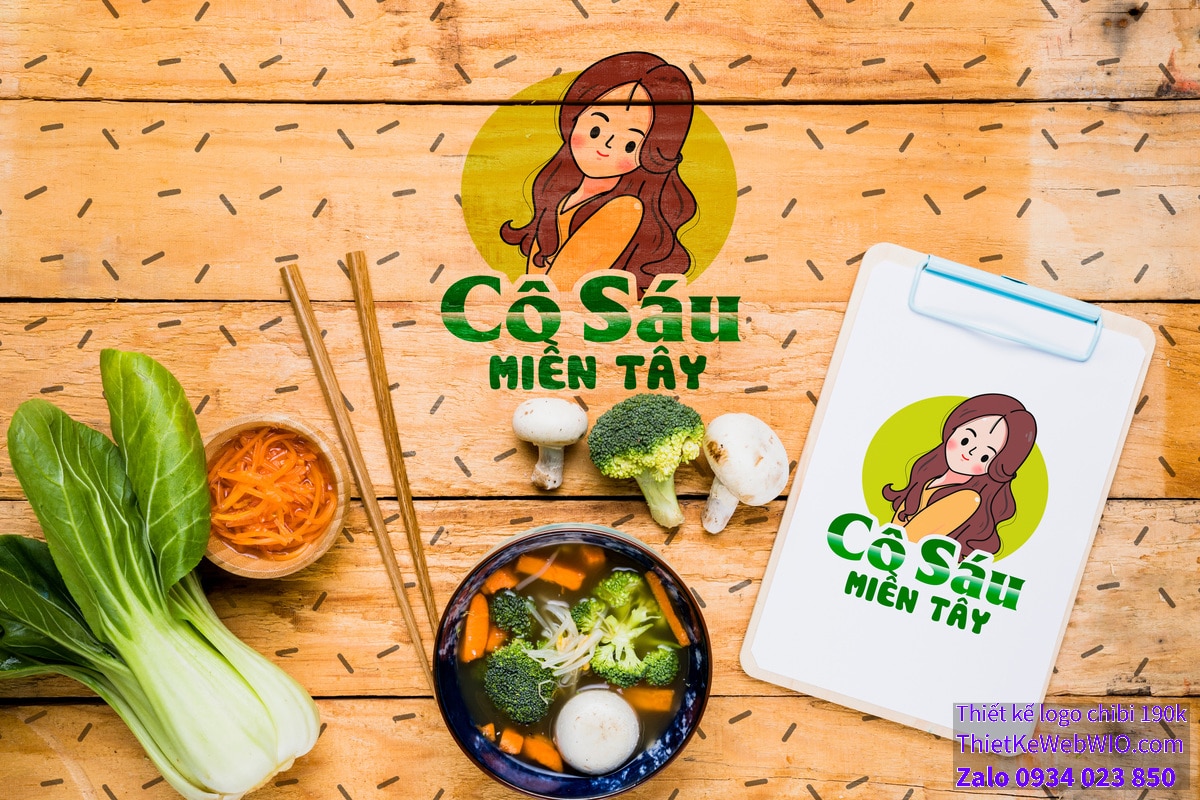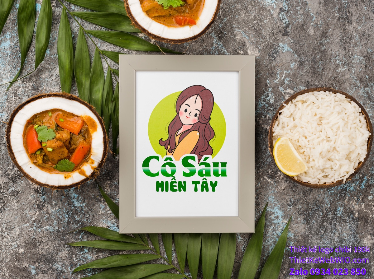 - Dòng chữ “Cô Sáu Miền Tây” được thiết kế với sự kết hợp hài hòa giữa màu xanh lá và cam, tạo điểm nhấn thu hút sự chú ý.