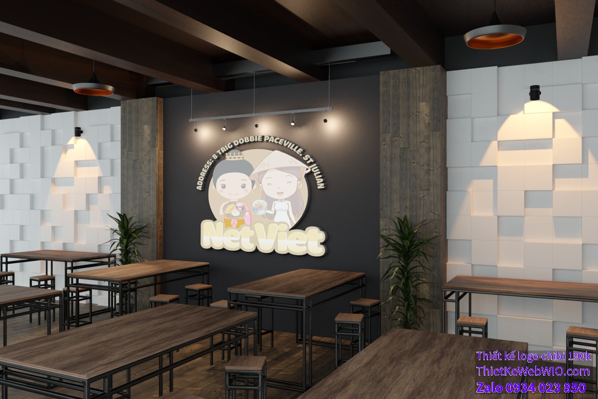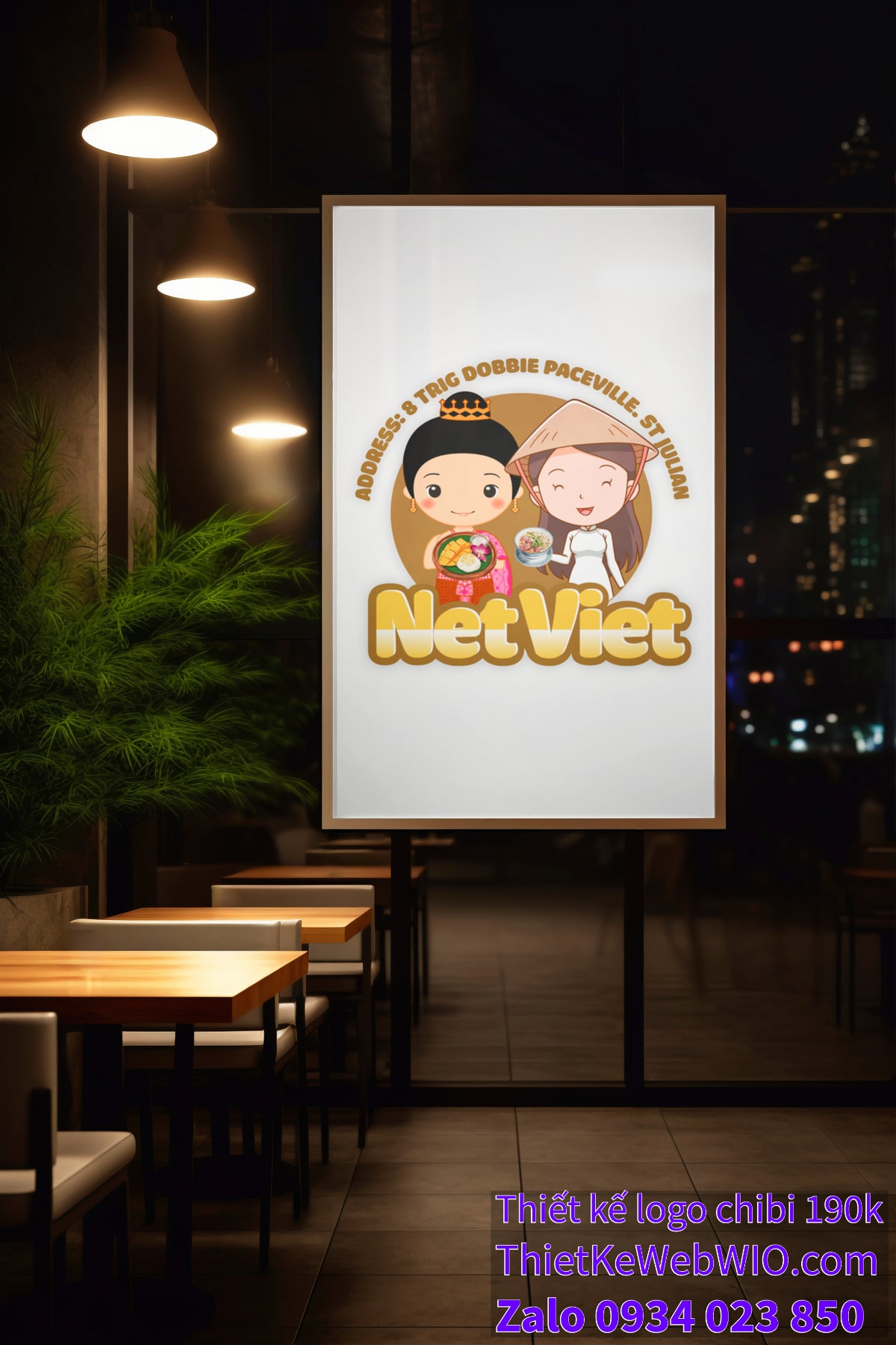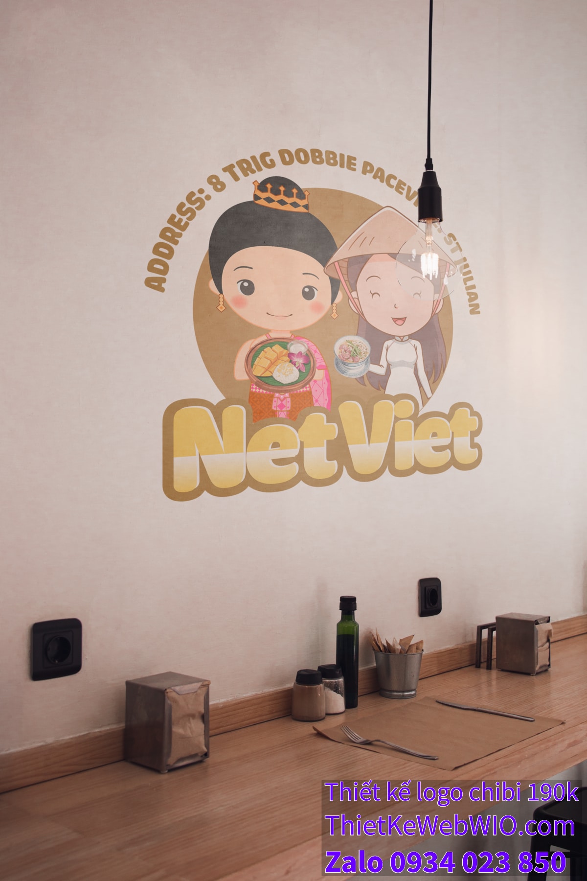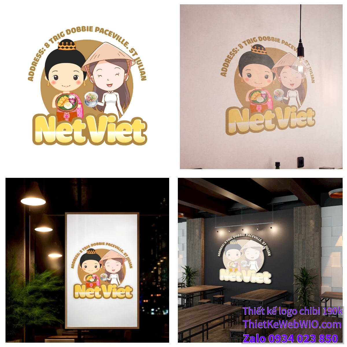 - Tên logo: Dưới hai nhân vật là dòng chữ “Net Viet” với kiểu chữ đậm và màu vàng sáng, tạo điểm nhấn mạnh mẽ. Tên logo cũng mang ý nghĩa kết nối và giới thiệu văn hóa Việt Nam đến với mọi người.
