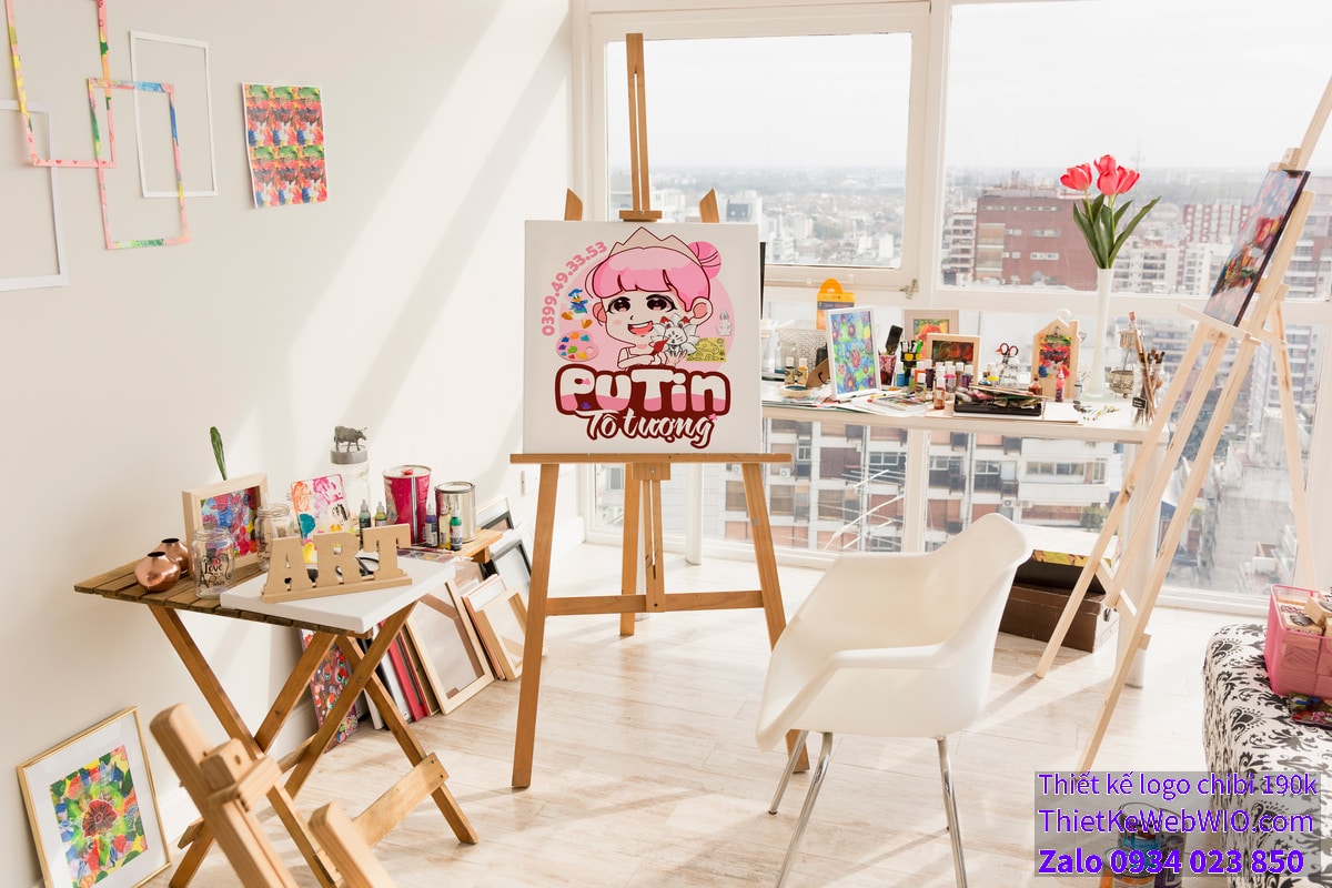 Hình ảnh chibi này là một thiết kế hoàn hảo để làm logo cho các dịch vụ hoặc cửa hàng liên quan đến nghệ thuật tô tượng. Với phong cách dễ thương, màu sắc tươi sáng và các chi tiết đặc trưng, hình ảnh này không chỉ thu hút sự chú ý mà còn truyền tải thông điệp về sự sáng tạo và niềm vui trong nghệ thuật.