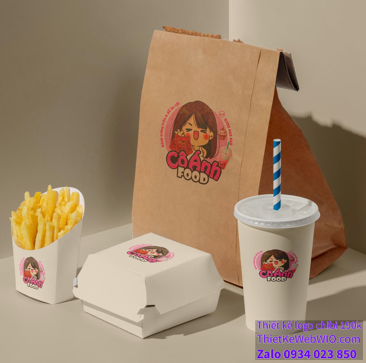 Tấm ảnh chibi này không chỉ là một sản phẩm nghệ thuật mà còn là một công cụ marketing hiệu quả, giúp thương hiệu “Cô Ánh Food” truyền tải thông điệp về sự đáng yêu, gần gũi và chất lượng của các món ăn vặt mà họ cung cấp. Thiết kế chibi với các chi tiết tỉ mỉ và màu sắc hài hòa chắc chắn sẽ thu hút sự chú ý và tạo ấn tượng sâu sắc trong lòng khách hàng.