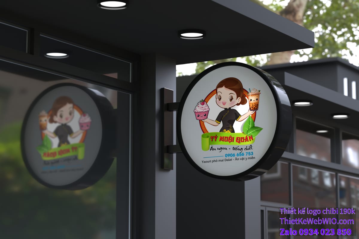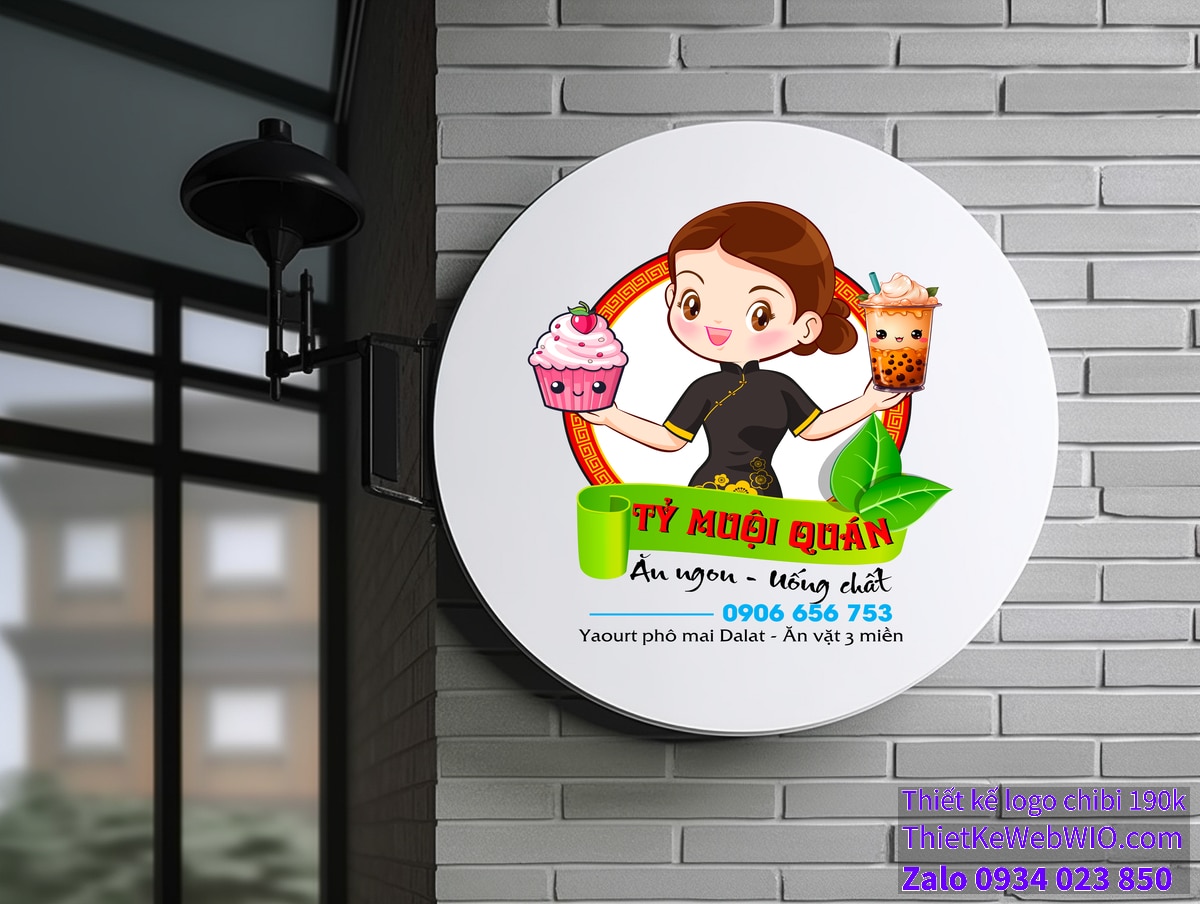- Dòng Chữ: Tên quán “Tỷ Muội Quán” được in nổi bật trên một dải băng màu xanh lá cây, với dòng slogan “Ăn ngon – Uống chất” phía dưới, thể hiện cam kết về chất lượng của quán.