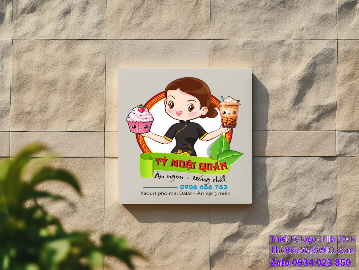 Thiết kế chibi này là một lựa chọn tuyệt vời để làm logo cho một quán ăn vặt. Nó không chỉ tạo ấn tượng mạnh mẽ về mặt thị giác mà còn truyền tải thông điệp về chất lượng và phong cách phục vụ của quán. Hình ảnh cô gái chibi duyên dáng, cùng với các món ăn vặt hấp dẫn, chắc chắn sẽ thu hút và giữ chân khách hàng.