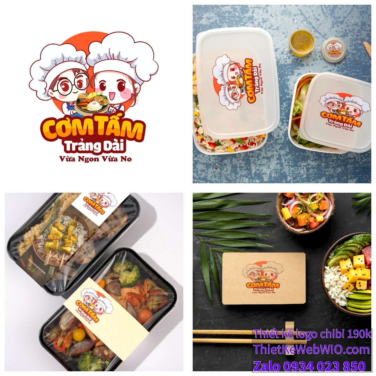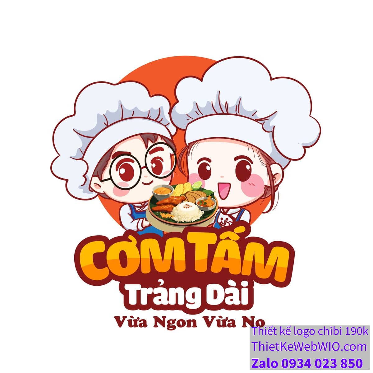 - Tên quán “Cơm Tấm Tràng Dài” được viết bằng phông chữ lớn, dễ đọc, với màu sắc tươi sáng và bắt mắt. Dòng khẩu hiệu “Vừa Ngon Vừa No” nằm phía dưới, hoàn thiện thông điệp mà logo muốn truyền tải.