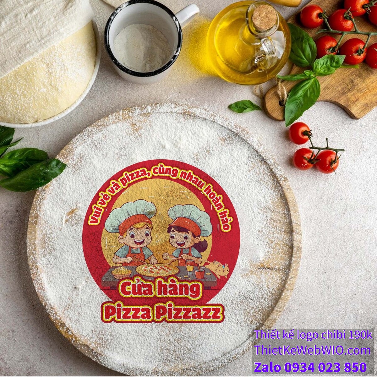 Bức ảnh này không chỉ thể hiện được niềm vui và sự hứng khởi của hai đứa trẻ khi làm pizza mà còn tạo ra một bầu không khí ấm cúng, dễ thương và thân thiện. Nó rất phù hợp để làm logo hoặc biểu tượng cho một tiệm pizza nhắm đến đối tượng khách hàng là gia đình và trẻ em.