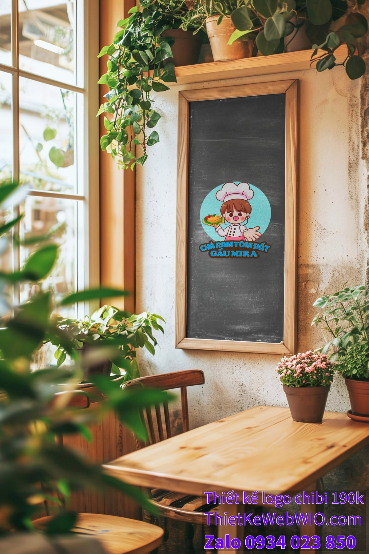 Tấm ảnh chibi này không chỉ gây ấn tượng bởi nét vẽ dễ thương và sinh động mà còn thể hiện sự tỉ mỉ trong từng chi tiết từ trang phục nhân vật, món ăn đến cách bố trí màu sắc và chữ viết. Đây là một tác phẩm lý tưởng cho việc thiết kế logo, tạo cảm giác gần gũi và thân thiện đối với người xem.
