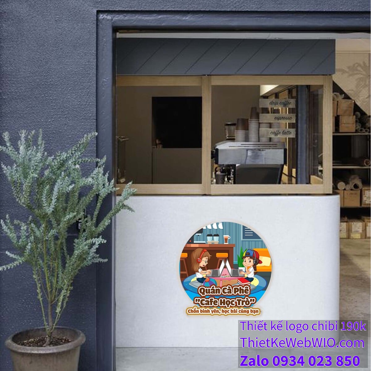 - Bên dưới dòng chữ chính là slogan “Chốn bình yên, học bài cùng bạn” được viết bằng màu vàng nâu, khẳng định mục tiêu của quán là mang lại không gian yên tĩnh và thoải mái cho việc học tập.