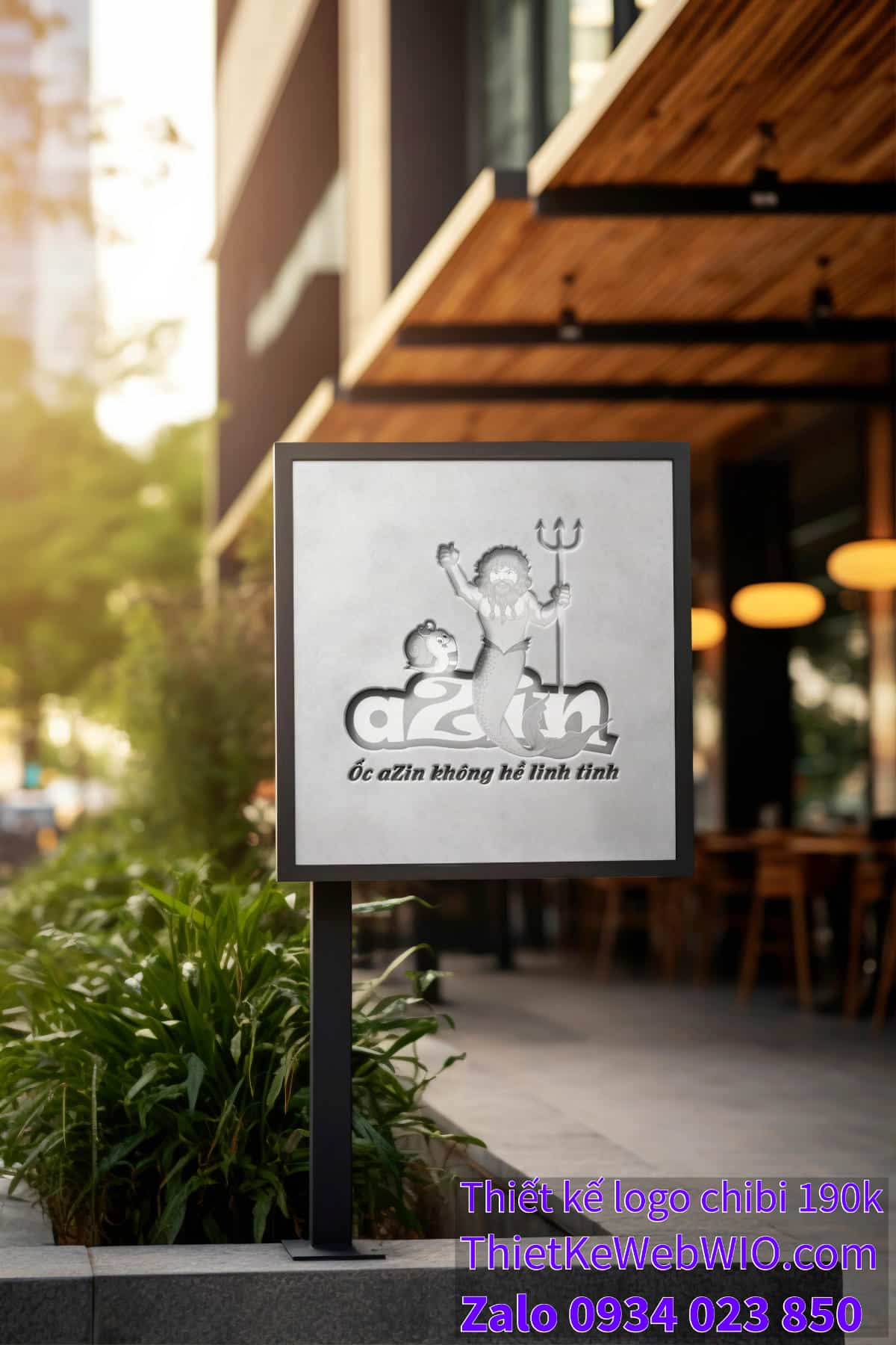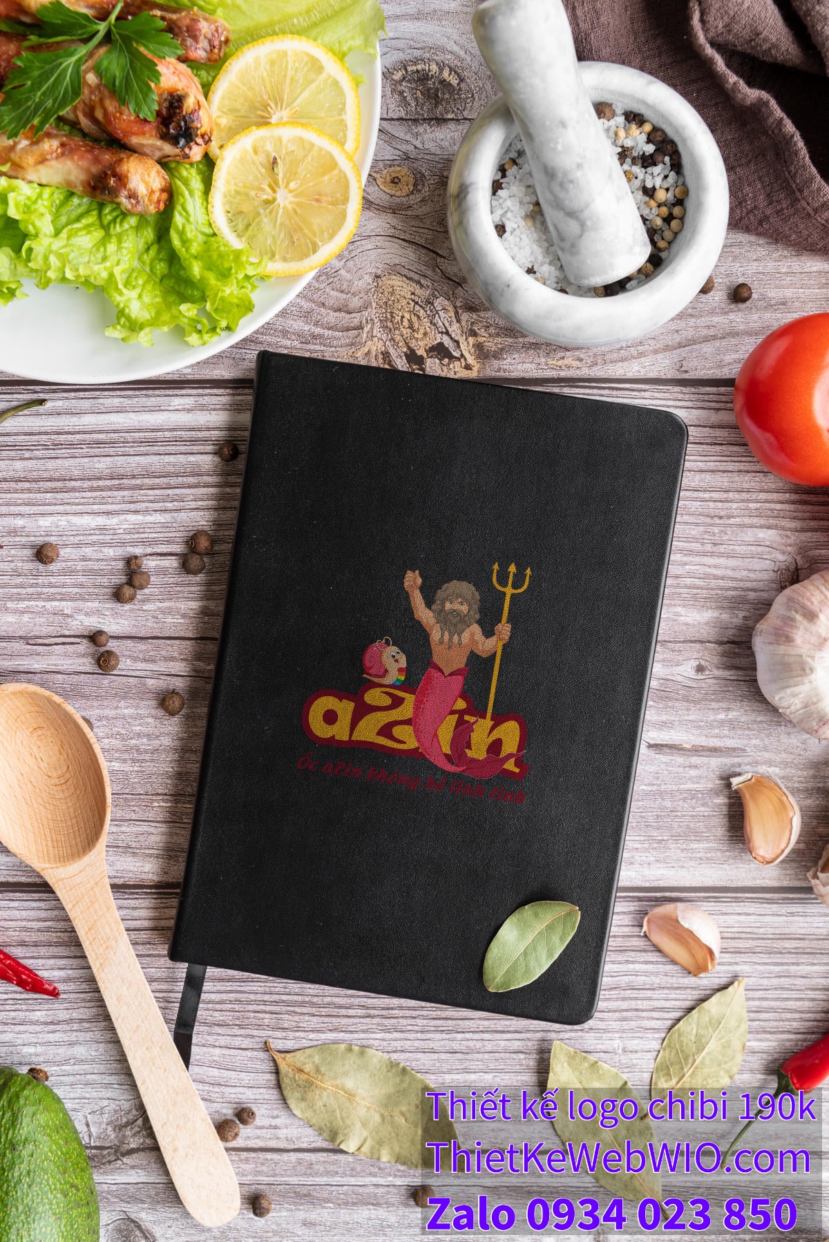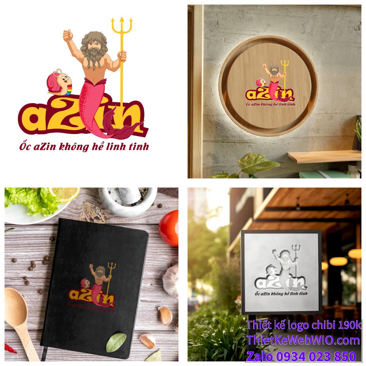 • Logo và slogan: Phía dưới hình ảnhchibi hải vương và chú ốc sên dễ thương  là dòng chữ “Ốc aZin” với phông chữ đậm, sắc nét và màu sắc nổi bật. Slogan “Ốc aZin không hề linh tinh” tạo nên sự kết nối mạnh mẽ với thương hiệu, nhấn mạnh tính chuyên nghiệp và chất lượng của dịch vụ.