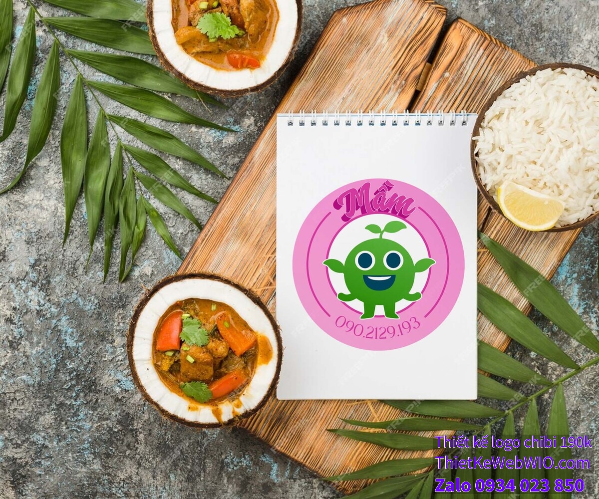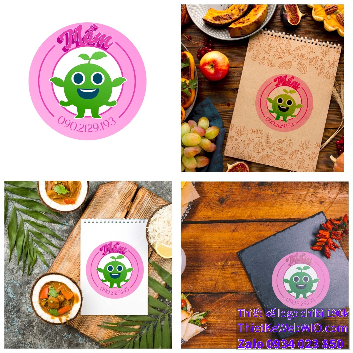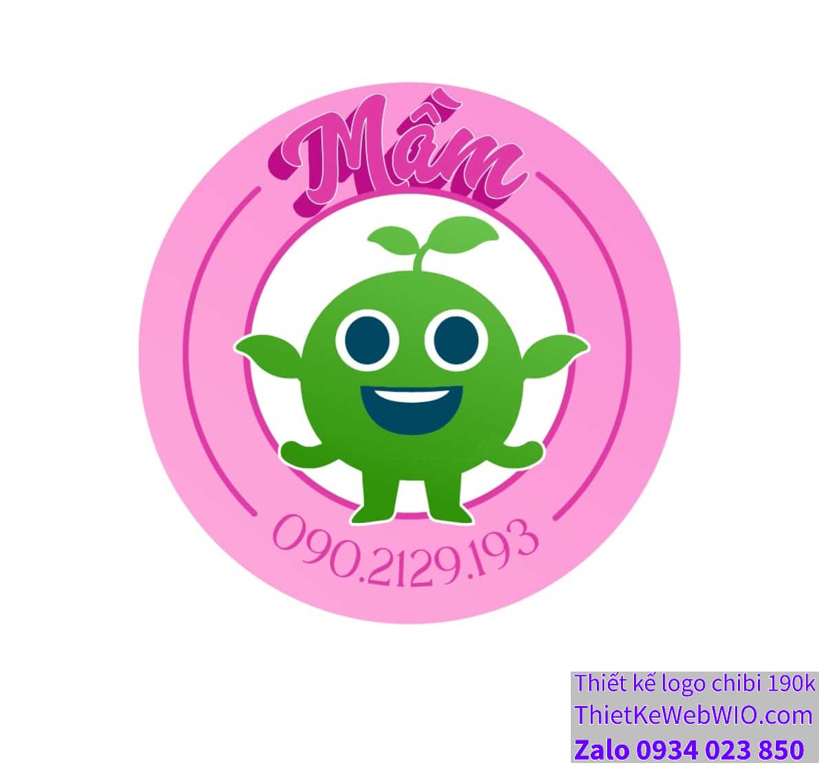 3. Khung viền và chữ: Khung tròn màu hồng bao quanh nhân vật chibi, với chữ “Mầm” viết cách điệu ở phía trên, và số điện thoại “090.2129.193” ở phía dưới, tạo nên một tổng thể hoàn chỉnh và dễ nhận diện.