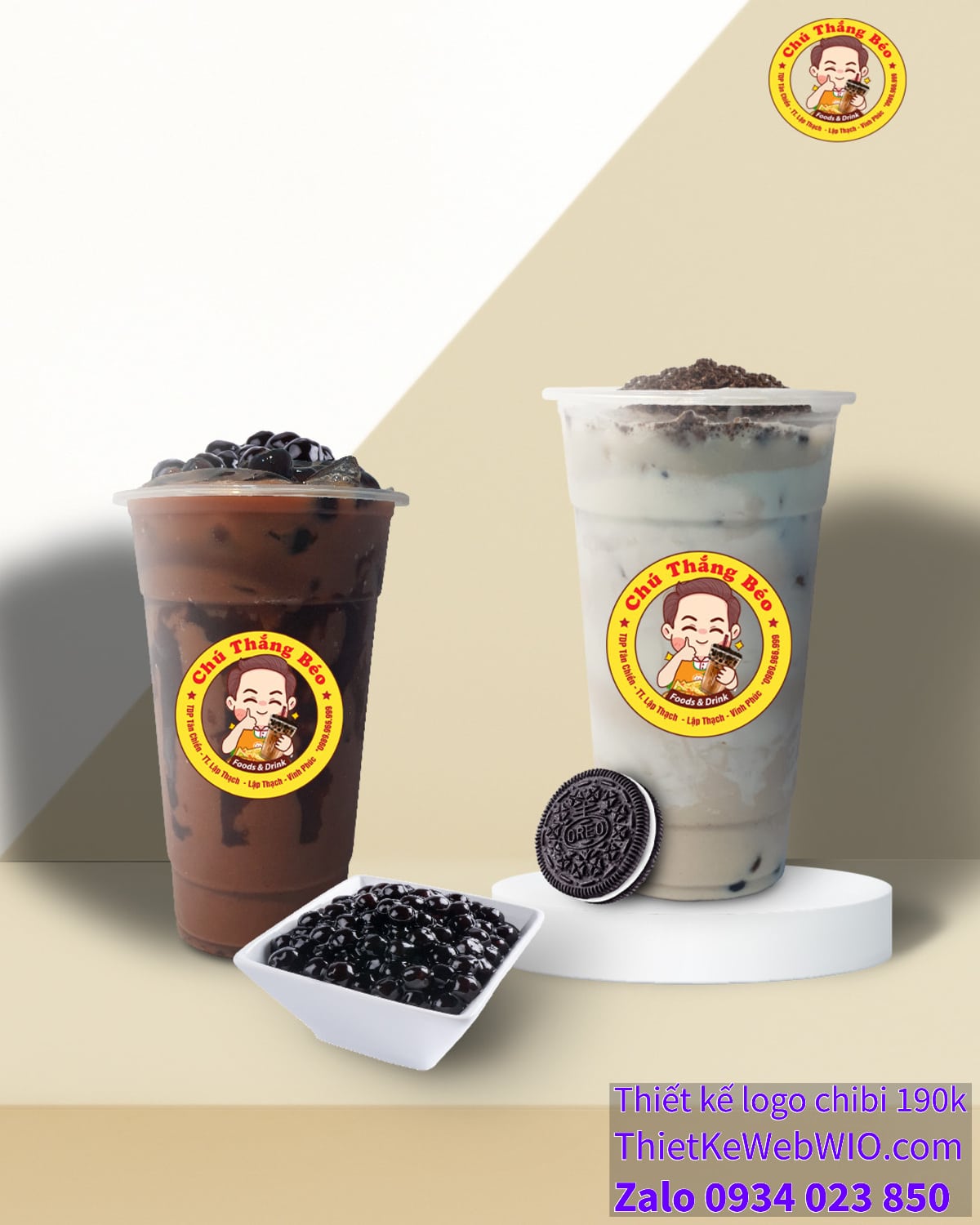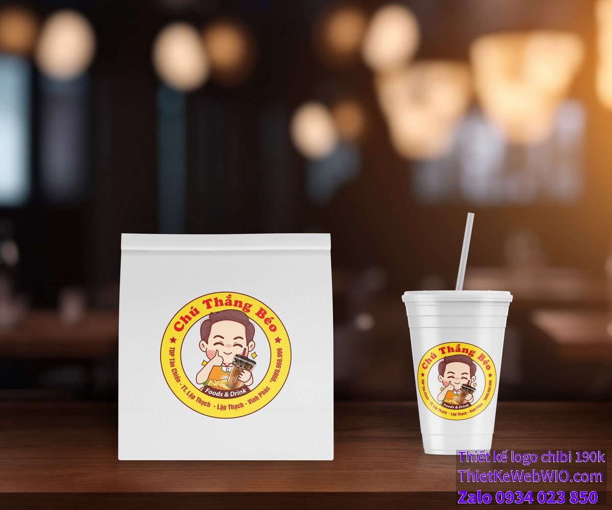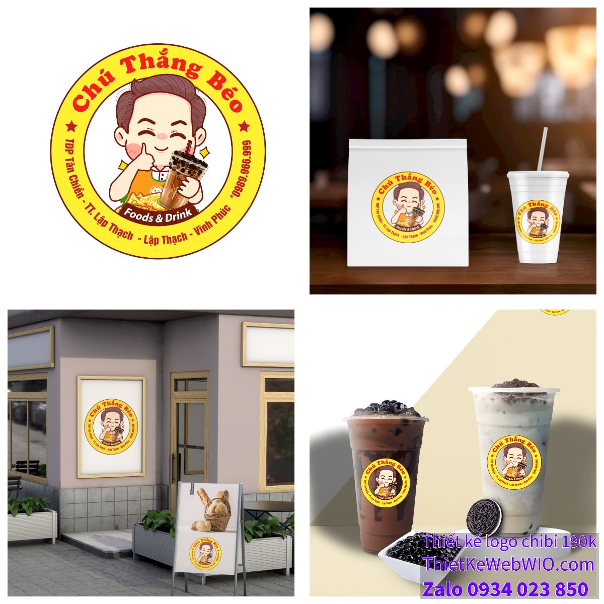 Vẽ chibi người đàn ông bán đồ ăn vặt và trà sữa để thiết kế logo