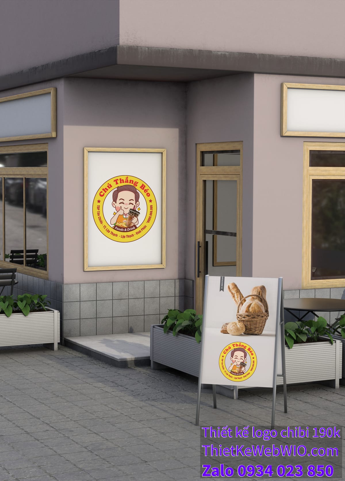 - Tên cửa hàng: “Chú Thắng Béo” được viết nổi bật với màu đỏ đậm, nằm ở phần trên của viền vàng.