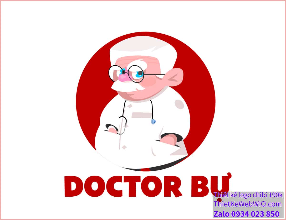 Vẽ chibi ông bác sĩ già với tóc và râu trắng đang đứng để thiết kế logo
