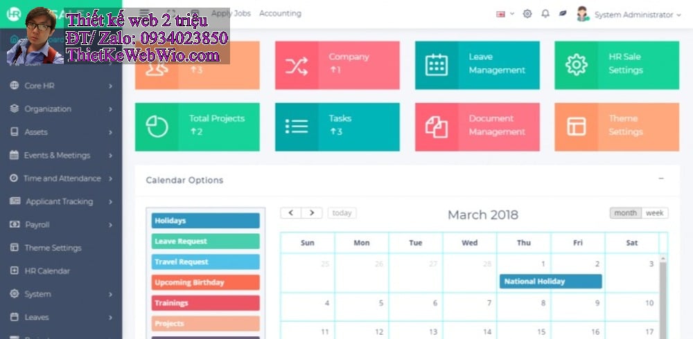Một tính năng nổi bật của Thiết kế website quản lý nhân sự là quản lý lịch làm việc, phép năm và các hình thức nghỉ của nhân viên. Nhân viên có thể đăng ký nghỉ phép trực tiếp trên hệ thống, trong khi quản lý có thể phê duyệt, điều chỉnh lịch làm việc mà không cần giấy tờ rườm rà.